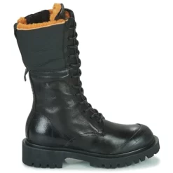 Cette cuissarde Airstep / A.S.98 risque de vous taper dans l’oeil… Parmi ses attributs, on compte une tige en cuir noir et une doublure en cuir. Petit détail non négligeable, sa semelle extérieure est en synthétique assurant souplesse et robustesse. Haut perchée, vous serez. Grâce à un talon de 5cm, ces cuissardes plairont aux plus aguerries !